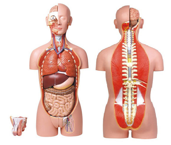 ■ 功能:85CM自然大人體兩性開背豪華型軀干,共27部件,男女生殖器可互換,詳細(xì)的再現(xiàn)軀干內(nèi)部器官細(xì)節(jié)構(gòu)造和人體各大學(xué)堂結(jié)構(gòu)以及人體軀干背部肌肉的基本結(jié)構(gòu),并且在每一個(gè)器官或結(jié)構(gòu)部位都標(biāo)示了數(shù)字,結(jié)合說(shuō)明書有利于精確地認(rèn)識(shí)人體解剖學(xué)的器官結(jié)構(gòu),適于教學(xué)研究的目的,模型部件包括:大小腦(1),眼球(1),左右肺(4),食管(1),氣管(1),肝和膽囊(1),胃(2),心臟(2),胰脾十二指腸(1),腎蓋(1),男性內(nèi)外生殖器(4),女性內(nèi)外生殖器(4),大腸小腸帶盲腸蓋(2),軀殼(1),胸椎(1),安放于塑料座上。