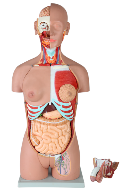 ■ 功能:85CM自然大人體兩性開背豪華型軀干,共29部件,男女生殖器可互換,詳細(xì)的再現(xiàn)內(nèi)部器官細(xì)節(jié)構(gòu)造和人體各大系統(tǒng)結(jié)構(gòu),并且在每一個器官或結(jié)構(gòu)部位都標(biāo)示了數(shù)字,結(jié)合說明書有利于精確地認(rèn)識人體解剖學(xué)的器官結(jié)構(gòu),適于教學(xué)研究的目的,模型部件包括:大小腦(1),眼球(1),左右肺(4),食管(1),氣管(1),肝和膽囊(1),胃(2),心臟(2),胰脾十二指腸(1),腎蓋(1),男性內(nèi)外生殖器(4),女性內(nèi)外生殖器(4),大腸小腸帶盲腸蓋(2),軀殼(1),胸椎(1),胸蓋(帶肋骨)帶胸腺(2),安放于塑料座上。