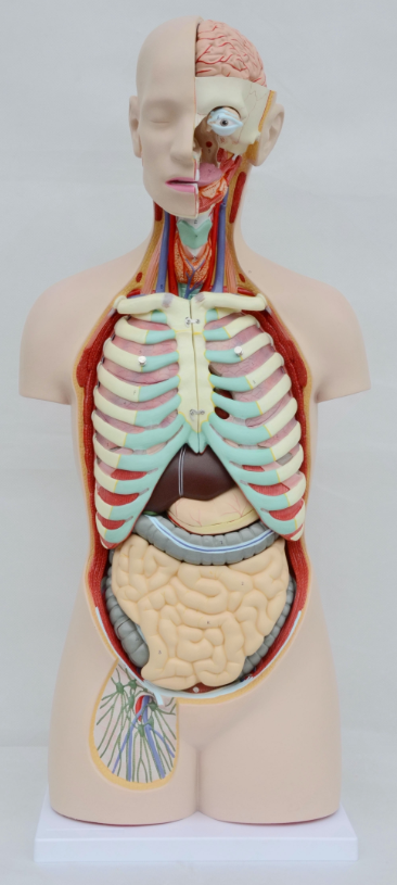 ■ 功能:此模型不僅詳細(xì)顯示了各臟器細(xì)節(jié)構(gòu)造,以及各大系統(tǒng)(呼吸系統(tǒng),消化系統(tǒng),泌尿系統(tǒng)),而且打開(kāi)后背,顯示了完整的中樞神經(jīng)系統(tǒng),包括大腦,小腦,腦干和整條脊髓。共17部件:軀殼(1),大腦(1),小腦(1),左右肺帶肋骨(2),心臟(2),肝(1),胃(2),腎蓋(1),半個(gè)膀胱(1),第七胸椎(1),升降結(jié)腸十二指腸連胰臟(1),橫結(jié)腸(1),小腸(1),腸蓋(1),安放于塑料座上。