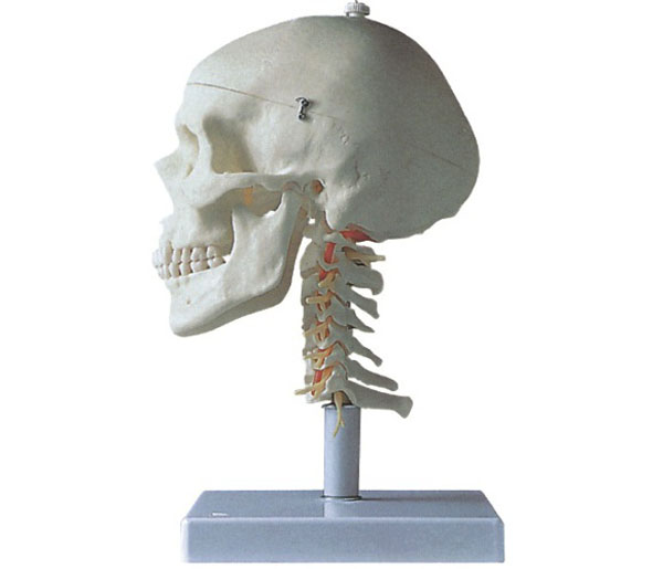 ■ 功能:模型正常人體頭顱骨帶7節(jié)頸椎、椎動脈、脊神經串制而成,顱蓋可打開,下頜骨可靈活活動,示顱骨和頸椎的組成和形態(tài)結構;
