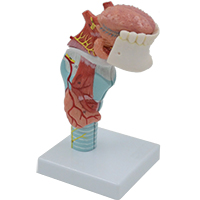 ■ 功能:該模型由喉正中矢狀切面、喉連氣管、舌根、下頜骨連牙等5個(gè)部件組成,并顯示喉軟骨、喉的連結(jié)、喉肌和喉腔等結(jié)構(gòu);