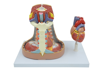 ■ 功能:6部件正常人體縱隔模型,包括一個2部件心臟以顯示心室和瓣膜結構。其中胸骨和胸腺可拆下,以觀察肺部血管系統(tǒng),通過胸廓口可以看到器官和食管進入縱隔的形態(tài);