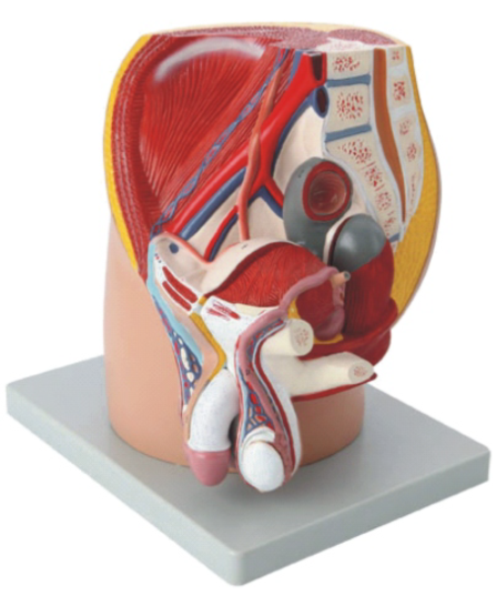 ■ 功能:模型由4個部分組成,通過骨盆的正中矢狀截面呈現(xiàn)一個開放的視圖。男性泌尿生殖系統(tǒng)的內(nèi)部結(jié)構(gòu)非常詳細(xì)??梢苿拥牟糠职ㄒ话氲年幥o分為內(nèi)側(cè)和橫切面,以及一半的男性生殖系統(tǒng),睪丸的開放性解剖顯示了內(nèi)部結(jié)構(gòu)的細(xì)節(jié);