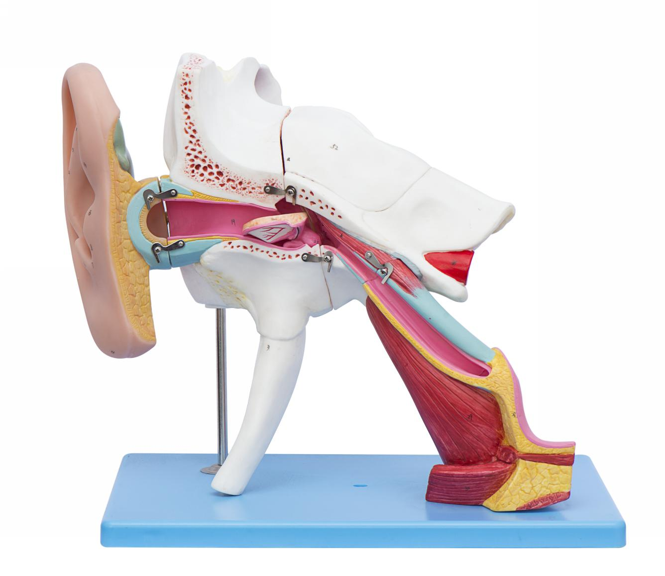 ■ 功能:模型由耳廓、外耳道、中耳鼓室、鼓膜和聽小骨、顳骨巖部、內(nèi)耳迷路和咽鼓管等8個部件組成,并顯示外耳、中耳鼓室、鼓膜和聽小骨、咽鼓管、顳骨巖部和內(nèi)耳迷路等結(jié)構(gòu);