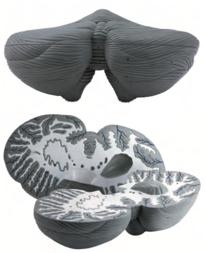 ■ 功能:顯示小腦的外形和內(nèi)部結(jié)構(gòu)。小腦水平切面可顯示小腦內(nèi)部結(jié)構(gòu), 包括小腦中央核(頂核、球狀核、栓狀核和齒狀核)等結(jié)構(gòu);