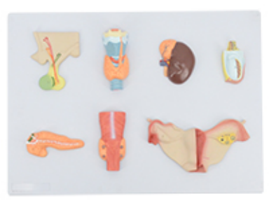 ■ 功能:模型顯示了以下人類內(nèi)分泌器官的外部結(jié)構(gòu):垂體、甲狀腺、腎上腺、睪丸、胰腺、甲狀旁腺、卵巢;