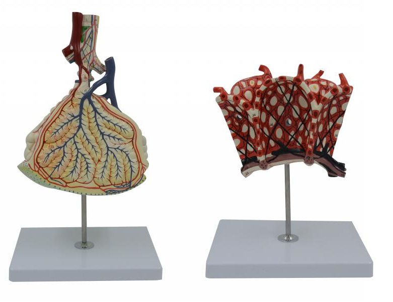 ■ 功能:模型由肺小葉放大模型和肺泡放大模型兩個(gè)模型組成。肺小葉放大模型顯示終末細(xì)支氣管、呼吸性細(xì)支氣管、肺泡上皮等結(jié)構(gòu)。肺泡放大模型顯示肺泡、肺泡上皮、肺泡囊、肺泡管、肺泡毛細(xì)血管等結(jié)構(gòu);
