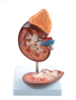 ■ 功能:放大1.5倍腎臟,帶腎上腺。2部件,顯示了腎剖面的腎皮質(zhì),腎髓質(zhì),腎小盞,腎大盞,腎盂,輸尿管以及腎動(dòng)脈,腎靜脈等結(jié)構(gòu);