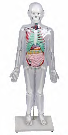 ■ 功能:顯示男性全身骨骼的組成和形態(tài)外觀,其中四肢骨可以靈活組合,頭顱骨和靈活組裝,固定在支架上,帶底盤,可靈活移動,體表由透明亞克力板吸塑而成,通過透明的軀殼體表,可觀察全身骨骼,胸、腹、盆腔內(nèi)臟器官的相互毗鄰位置和關(guān)系;