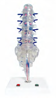 ■ 功能:模型演示腰椎與脊神經(jīng)關(guān)系,顯示由透明亞克力材料制作的五節(jié)腰椎及骶尾椎和脊神經(jīng)的組成;